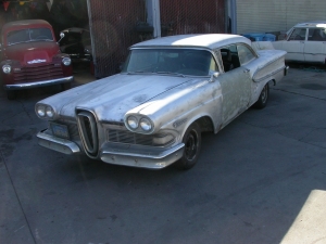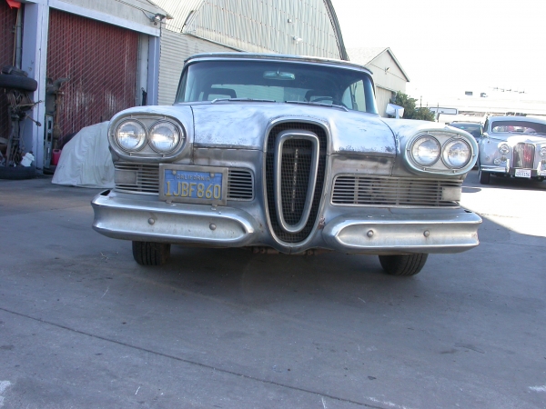 HERES A 2 DOOR HARDTOP FROM 1958 THE YEAR OF THE FORDS INTRODUCTION TO THEILL FATED ALL NEW EDSEL , BY 1960 THE EDSEL WAS GONE AND ARE NOW A RARE SIGHT EVEN THE HEDDY WORLD OF CAR COLLECTING , THIS CAR WAS ONE OF SEVERAL UNDER THE OWNERSHIP OF A TRUE BLUE OVAL FAN , RECENTLY REMOVED FROM LONG TERM DRY STORAGE , THIS CAR COMES WITH A MOUNTAIN OF EXTRA PARTS , ENGINE RUNS VERY WELL , CURRENTLY WE HAVE NO BRAKES AND WE HAVE HAD NO TIME TO INVESTIGATE HOWEVER IN THE COMING WEEKS WE WILL BE WORKING ON MAKING IT A DRIVER , THIS IS A GOOD SOLID EXAMPLE THAT IS READY TO RESTORE .
