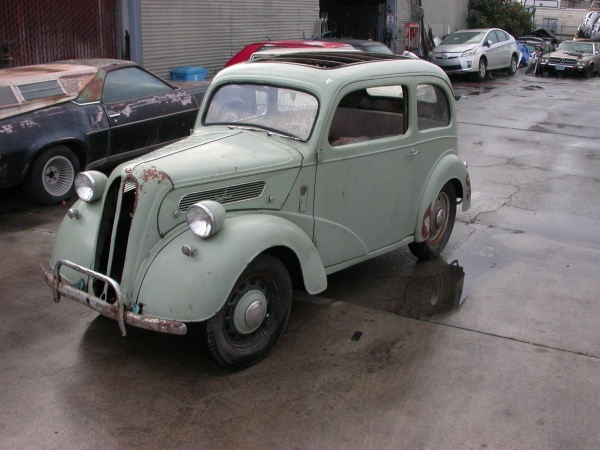 HERES ONE YOU FOR SURE DO NOT SEE EVERY DAY ESPECIALLY HERE IN AMERICA , 1950 FORD POPULAR ALSO KNOWN TO THOSE OF US FROM ITS BIRTH PLACE AS SIT UP & BEGS , DAGENHAM DONKEYS AND PUDDLEJUMPERS , , BETTER KNOWN TO OLDER AMERICANS AS ANGLIA,S , A COMMON SITE ON DRAG STRIPS AROUND THE USA BACK IN THE A/GAS WARS OF THE 60,S , THIS LITTLE GEM HAS JUST BEEN REMOVED FROM 45 YEARS IN STORAGE HERE IN CALIFORNIA , THE BODY IS AS RUSTFREE AND STARIGHT AS YOU WILL FIND , AT SOME POINT IN ITS LIFE THE NEGINE/GEARBOX WERE REMOVED AND ARE NOW IN THE TRUNK , THE ORIGINAL BAKELITE DASH IS IN EXCELLENT CONDITON AND STILL HAS THE ORIGINAL KEY IN THE IGNITION ODO SHOWS 56,000 MILES , ORIGINAL SEMIPHORES STILL IN PLACE ORIGINAL STEERING WHEEL IS IN EXCELLENT CONDITION , AN EXTRA BAKELITE DASH A VERY NICE ORIGINAL GRILL SHELL, EXTRA FRONT /REAR SEATS ARE INCLUDES WITH THE SALE . IT WOULD BE A SHAME TO TURN THIS OLD GIRL INTO A FIREBREATHING V8 PAVEMENT POUNDER , BUT ITS A VERY GOOD SOLID BODY TO SART WITH SHOULD THE NEXT OWNER CHOOSE TO DO SO , ORIGINAL VIN PLATE STILL IN PLACE AND A CLEAN CALIFORNIA TITLE ARE PRESENT