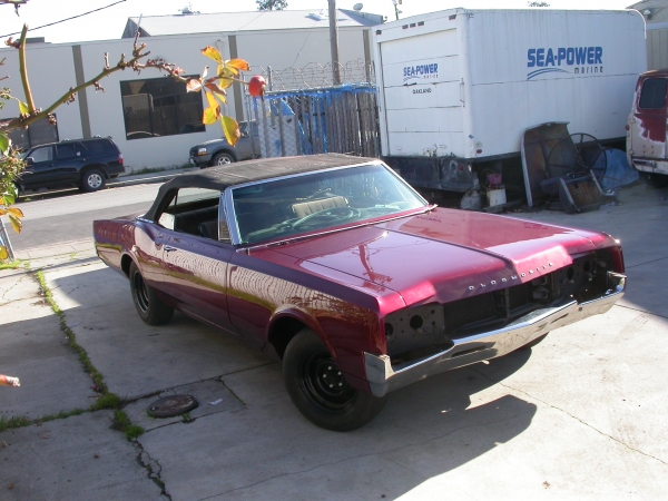 HERES A FULL SIZE OLDS CONVERT A CALIFORNIA CAR SINCE NEW EQUIPPED WITH FACTORY A/C POWER SEAT P/S,P/B,POWER TOP , SAME OWNER FOR MANY YRS THE CAR WAS TAKEN OFF THE ROAD SOME YEARS AGO AND A RESTORATION STARTED , ENGINE/TRANS WERE REMOVED REBUILT AND REINSTALLED, ALL CHROME AND STAINLESS TRIM WAS REMOVED ,CHROME REPLATED,STAINLESS POLISHED AND STILL WRAPPED IN PAPER , NEW CLOTH TOP FITTED MAG WHEELS/TYRES FITTED , AT THAT POINT DUE TO ILL HEALTH THE CAR WAS RETURNED TO THE OWNER AND THERE IT SAT , IT WAS STARTED AND RUN ONCE IN AWHILE BUT NEVER DRIVEN AGAIN , THE CAR IS NOW STILL ON THE BUTTON AND NOW DRIVABLE BUMPERS ARE ON THE CAR MOST OF THE SIDETRIM ,GRILLE,HEADLIGHTS, REAR LIGHTS NEED TO BE INSTALLED ,THE CAR IS 100% COMPLETE THE BODY IS LASER STRAIGHT , THE POWER TOP FUNCTIONS CORRECTLY , FUNCTIONING POWER SEAT, ENGINE RUNS SMOOTH THE 70,S STYLE MAG WHEELS WERE REMOVED BY US AND STEEL GM RALLY WHEELS ADDED WITH FRESH TYRES , CLEAN CALIFORNIA TITLE INCLUDED WITH SALE .